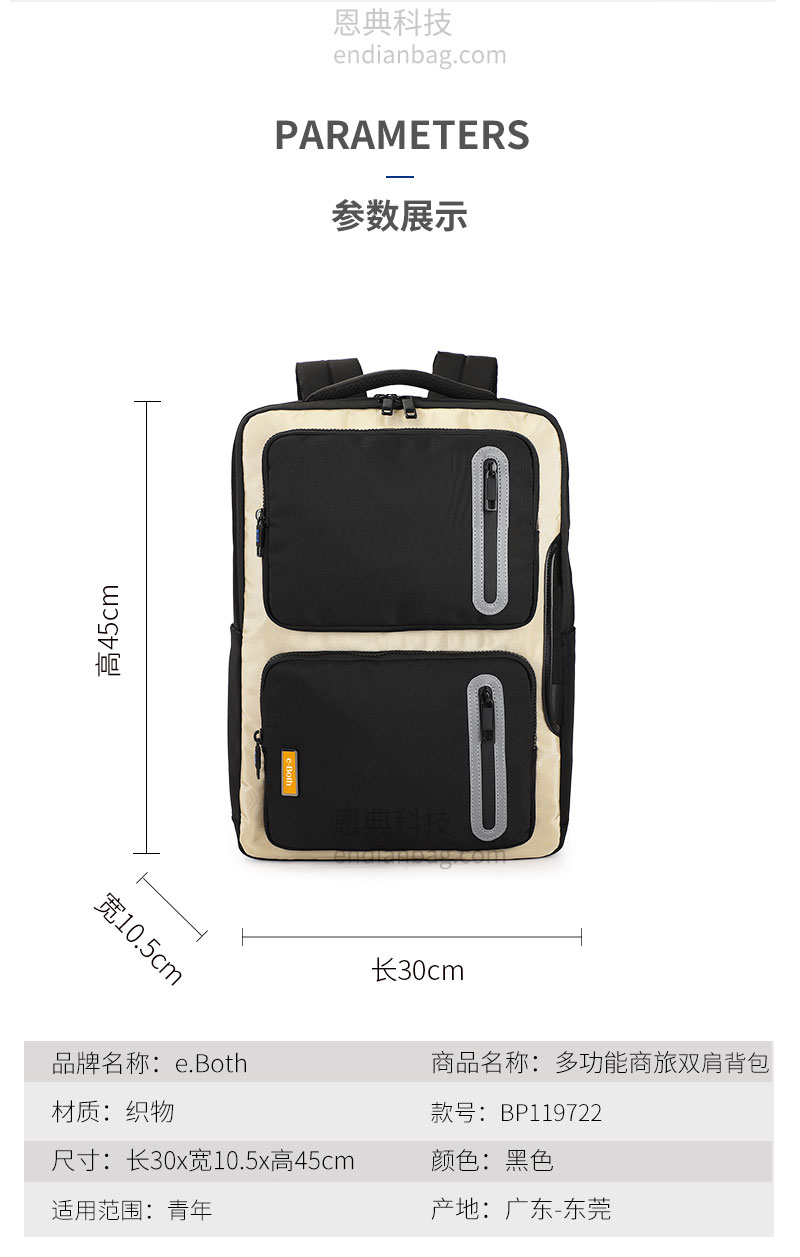 多功能商旅双肩包,大容量防泼水,隐藏式手挽设计,秒变公文包;