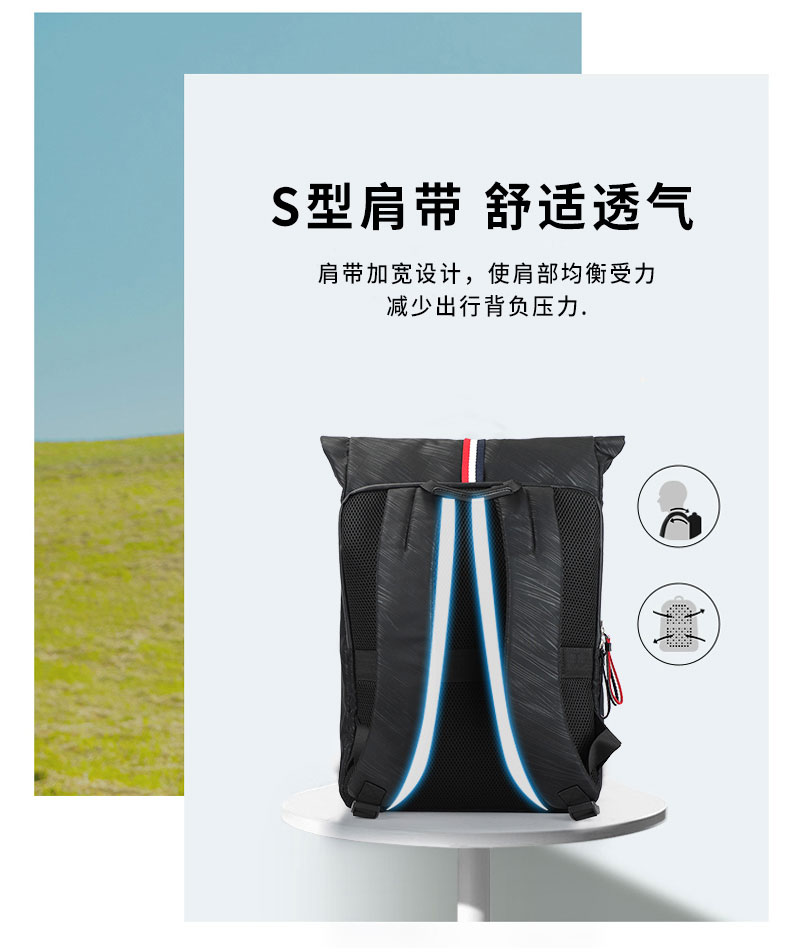 S型肩带,肩带加宽设计,肩部均匀受力,减少背负压力;