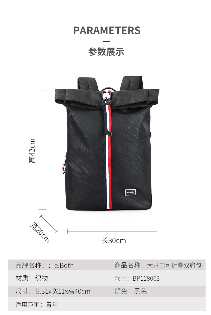 大开口可折叠双肩包精选优质面料,遇水不易渗透,耐勾蹭;