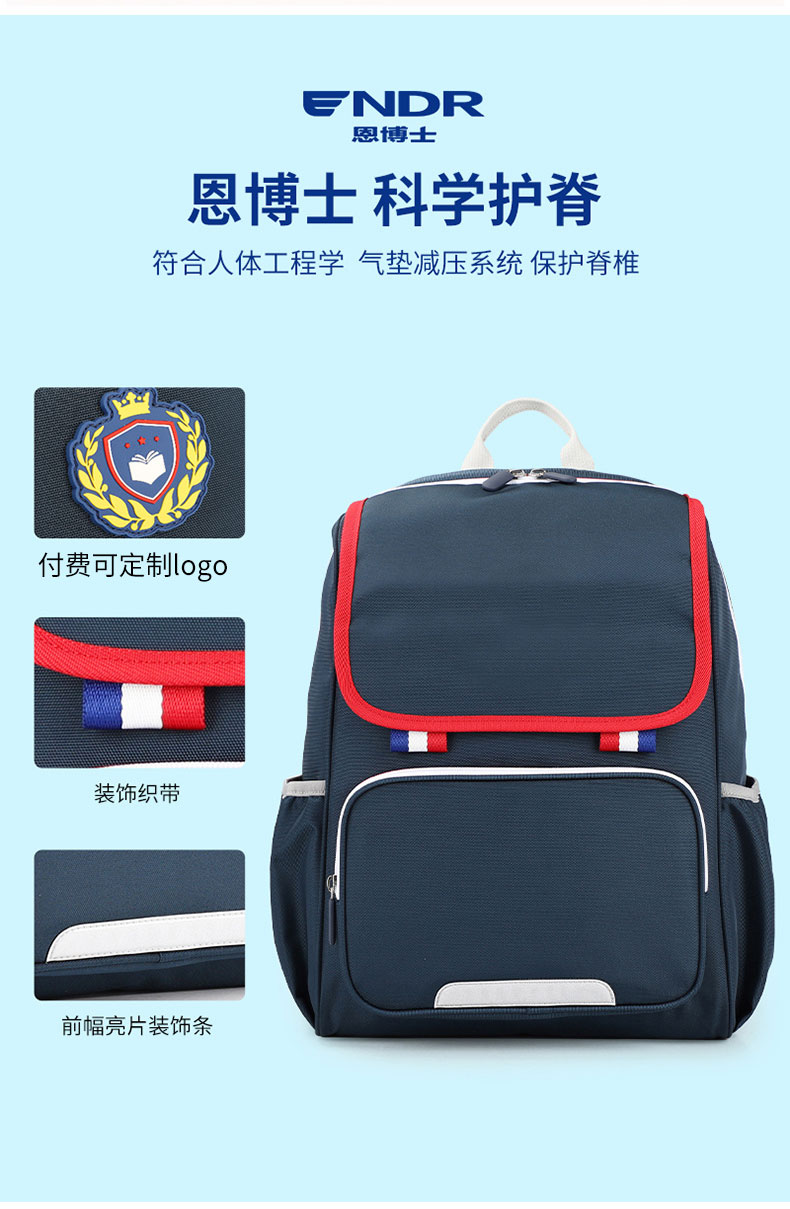 英伦学院风学生书包定制大容量主袋+内置隔层+风琴式挡板分区收纳,课本物品有序放置。符合人体工程学,气垫减压系统,保护脊椎。学生书包定制请认准广东恩典科技,25年箱包行业生产定制经验,自建1.5万平米工业园,8000平米工作区,462名艺师,16条生产线,日产量可达13000Pcs。自有实验室拥有恒温恒湿、拉力、盐雾、破裂、拉链往复等检测设备,从原材料到成品每一个环节都经严格的检测,恩典皮具所使用的材料均达到国际环保REACH标准,客户中标率和返单率高达70%,5年畅销达到500万个。从开发到生产,专人为您把关每一个环节做好跟进服务。定制热线:18575391373