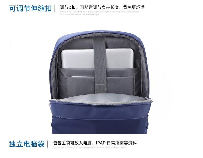 时尚商务双肩背包定制精简外观设计,男女通用双肩包,凸显大气。优化的商务功能,大容量设计可容纳14寸电脑,还可以装下很多随身物品。精选优质面料防泼,下雨也不怕包包打湿。双肩包不同的用途分成,双肩电脑背包(Computer Backpack),运动双肩包(Sports Backpack),时尚双肩包(Fashion Backpack),学校双肩包背(School Backpack)和束口绳包,军用背包(Military Backpack),登山包等等。根据材质的不同又会成帆布包,牛津布包,尼龙布包。广东恩典科技创办于1997年,致力于背包、双肩包设计生产销售的箱包生产厂家,自有厂房1.5万平米,引进日本JUKI和BROTHER等高端品牌机器设备。我们提供颜色,材料都可以选择,如果没有您喜欢的款式,可以免费设计。大部分是样品,非现货,少量现货,请咨询客服,接受来样来图定制!定制热线:185-7539-1373