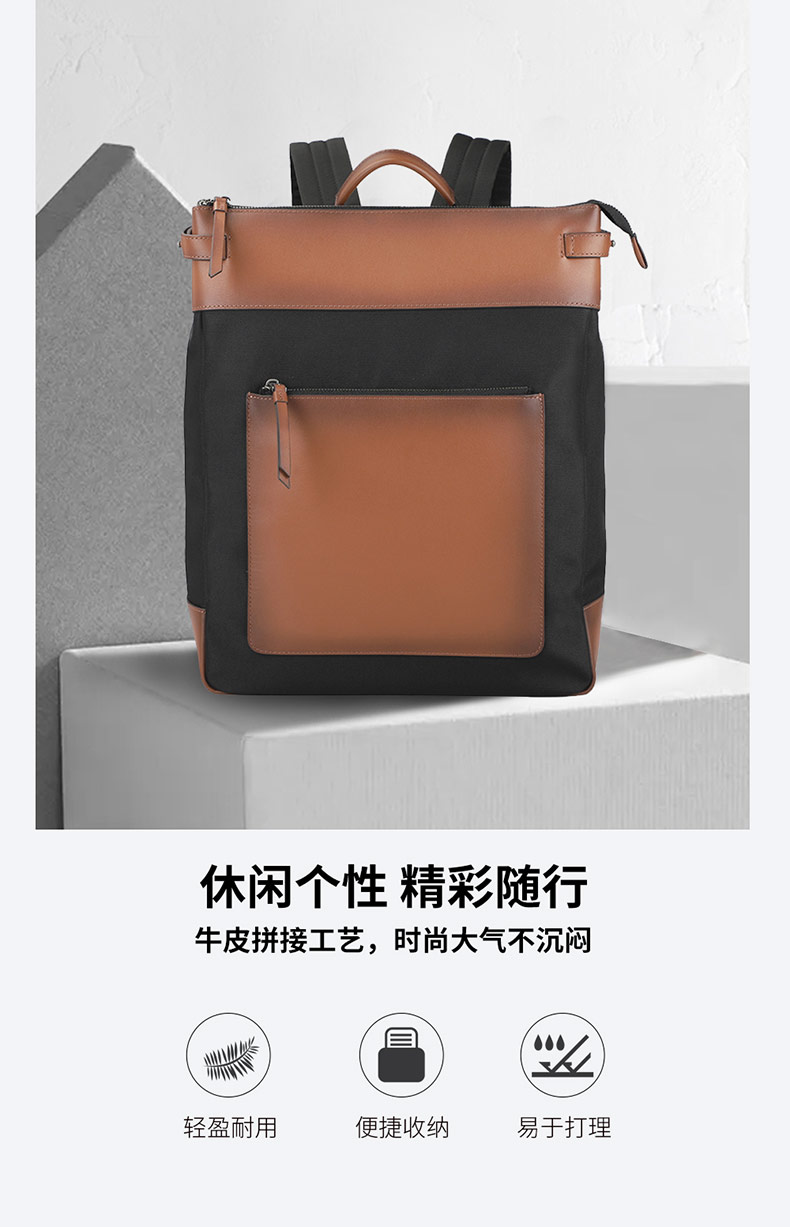 牛皮革拼接植物织料,纹理细腻,手感舒适,色丁绒里,质感强