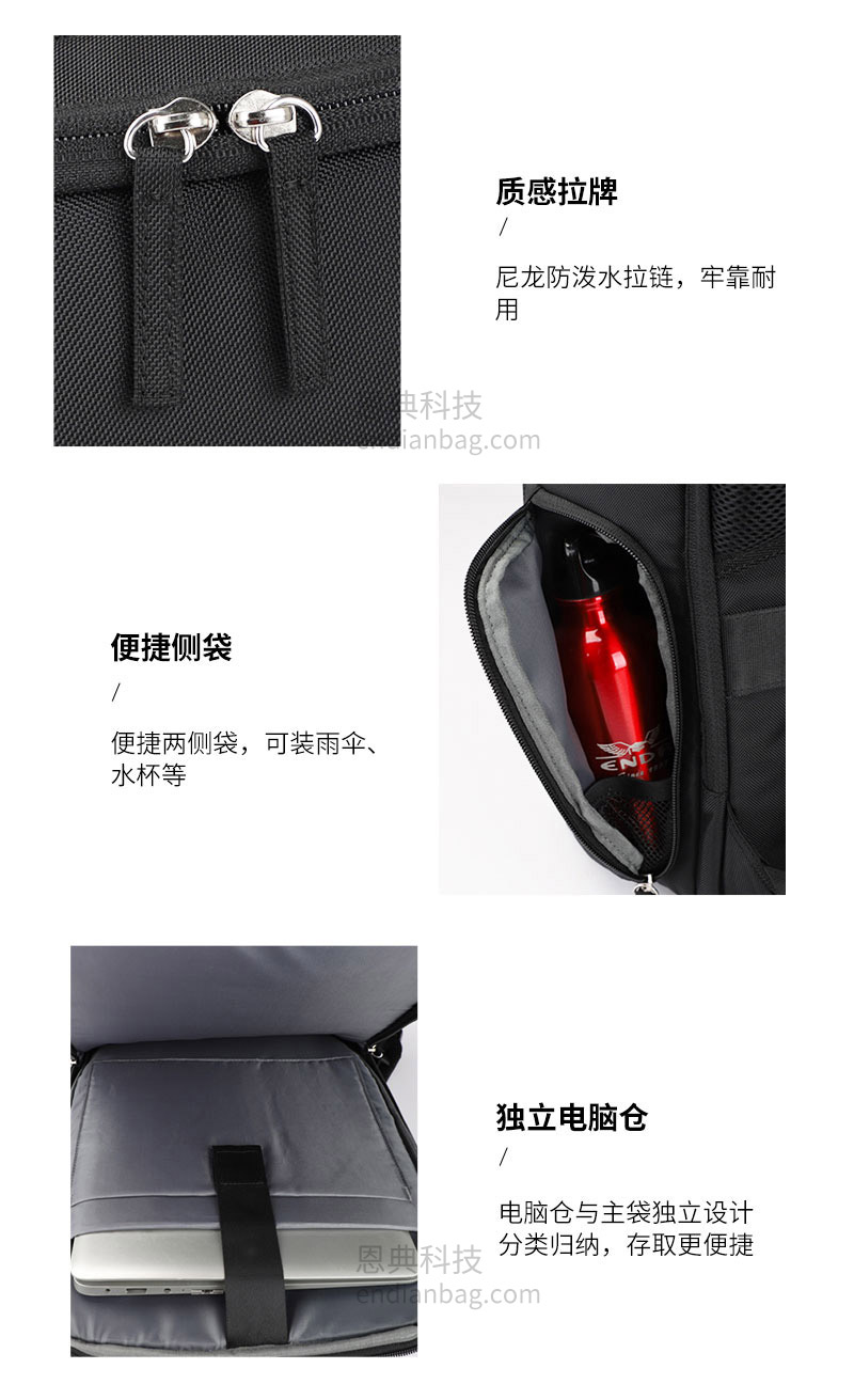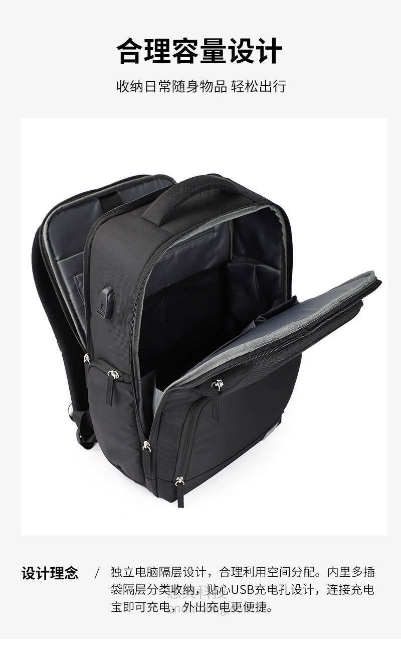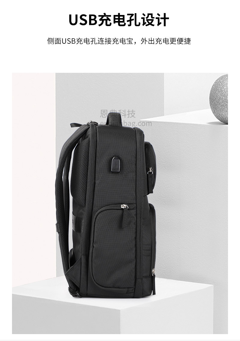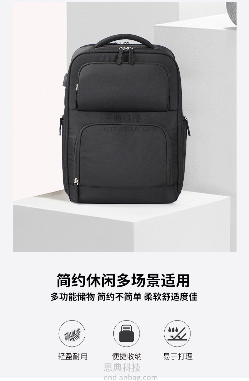 男士多功能商务双肩包定制大容量多隔层,适用商务休闲。立体网孔组织三明治面料,耐磨适用,不起球。840D小双股料,耐磨防撕裂,拉力强,面料结实,更耐用。USB充电孔设计,外出充电更便捷。独立电脑隔层设计,合理利用空间分配。商务双肩包定制请认准广东恩典科技,25年箱包行业生产定制经验,自建1.5万平米工业园,8000平米工作区,462名艺师,16条生产线,日产量可达13000Pcs。自有实验室拥有恒温恒湿、拉力、盐雾、破裂、拉链往复等检测设备,从原材料到成品每一个环节都经严格的检测,恩典皮具所使用的材料均达到国际环保REACH标准,客户中标率和返单率高达70%,5年畅销达到500万个。从开发到生产,专人为您把关每一个环节做好跟进服务。定制热线:18575391373